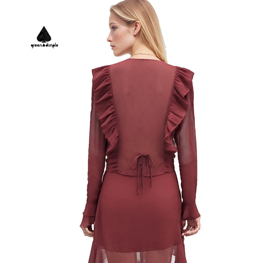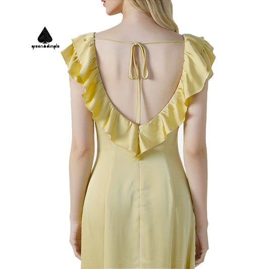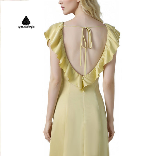 Elegant ruffle collar maxi backless women casual chiffon dress