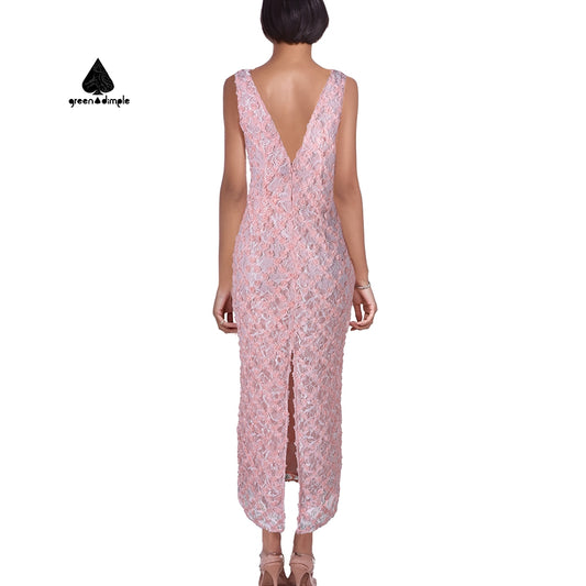 Pink Casual V-Neck Lace EMBROIDERY flower Long Dress