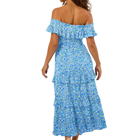 Blue Summer Casual floral Off Shoulder long dressesRegular price $73.45 USDRegular priceUnit price per$96.05 USDSale price $73.45 USDSale