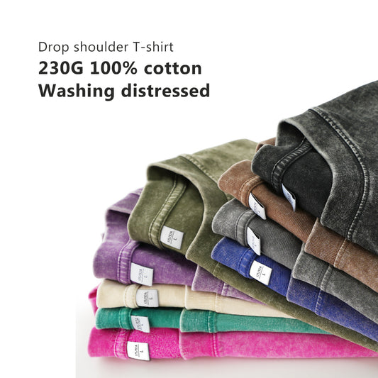 230g 100% cotton drop shoulder plus size loose style wash distressed T shirtRegular price $16.39 USDRegular priceUnit price per-
