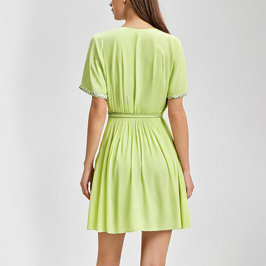 Light Green polynesian women casual short shirt dresses with open front and belt