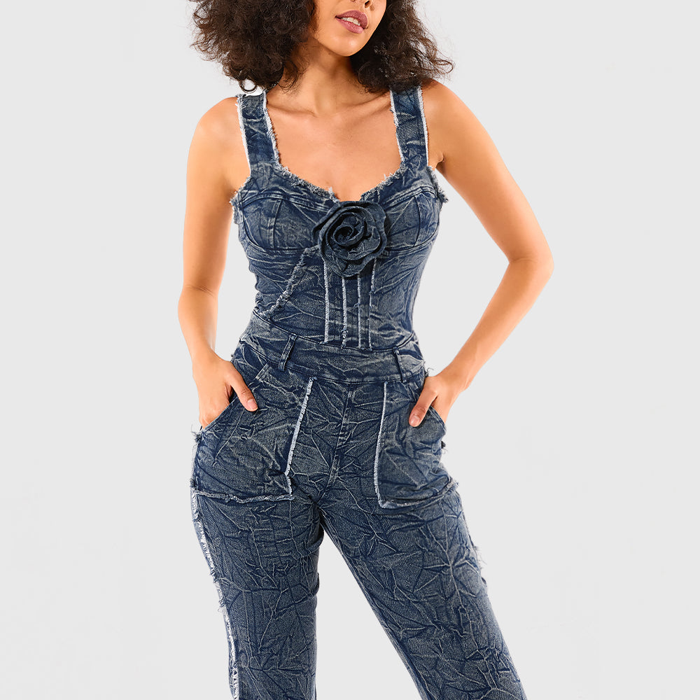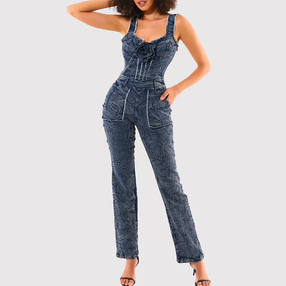 We Customize Fashionable women Casual jean Printed onesie, the epitome of sophisticated style. This sleeveless jumpsuit features a back hollow out strap, perfect for showing off your unique sense of fashion. Made with premium materials, it promises both comfort and luxury. Elevate your wardrobe with this exclusive piece.