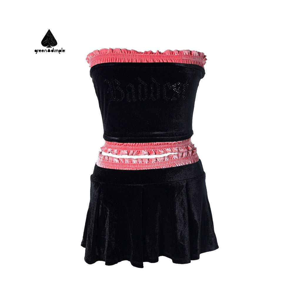 2 Pieces Tube Top and Mini pleasted Skirt Set