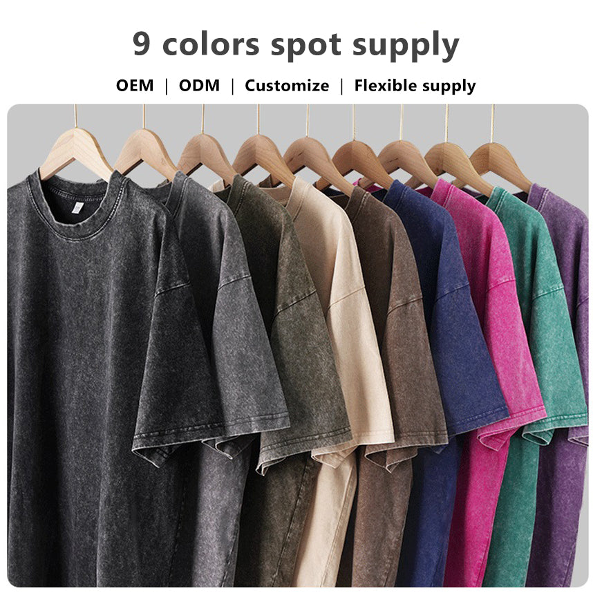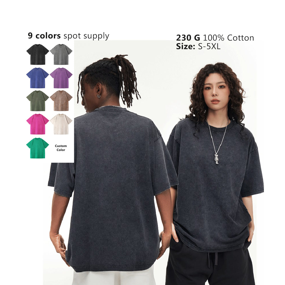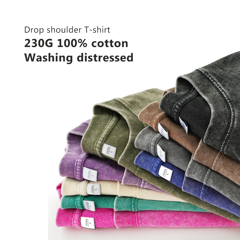 230g 100% cotton drop shoulder plus size loose style wash distressed T shirt