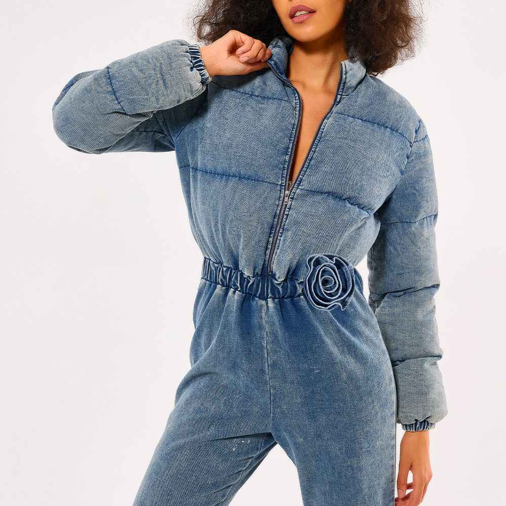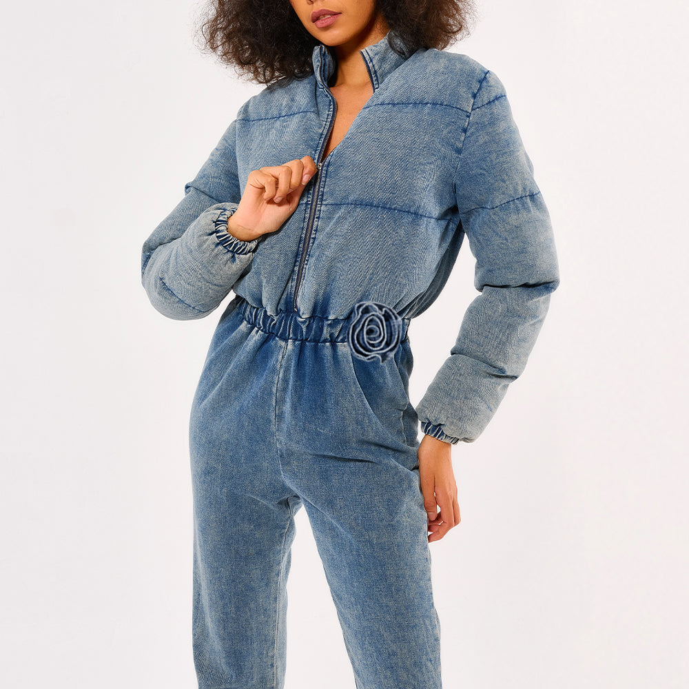 Customize Women's Denim Thick Winter fashion lady cloth Casual Jumpsuit