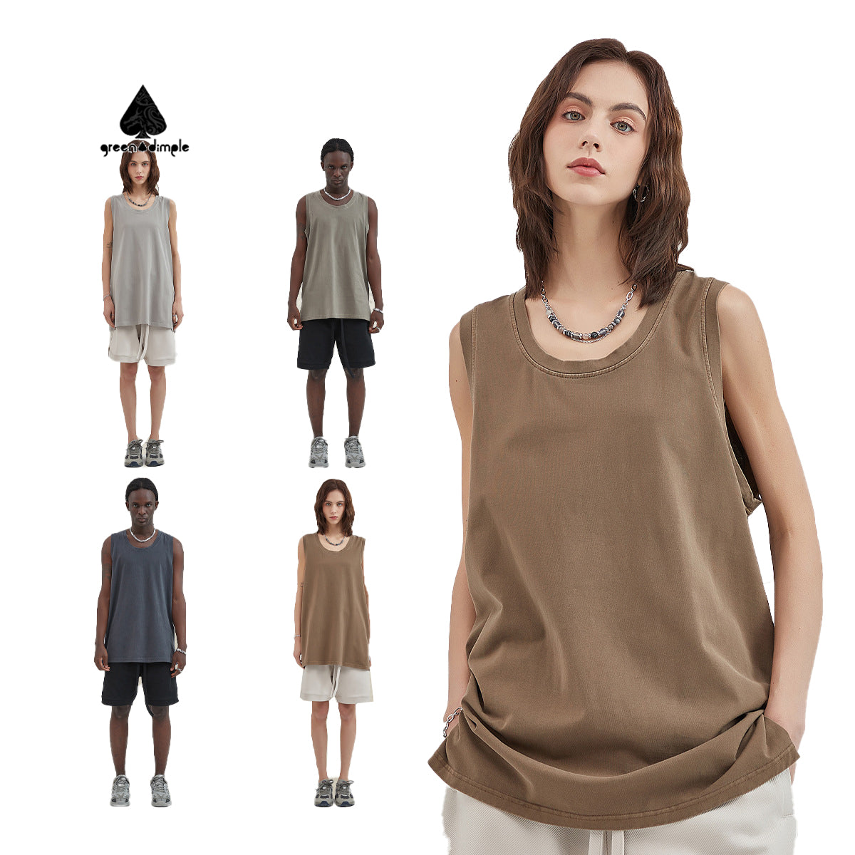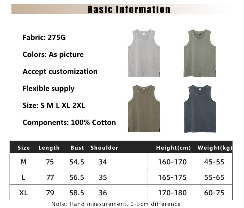 Pure cotton plus size Vest! Perfect for streetwear or the gym, this custom, organic cotton t-shirt features a distressed, acid wash design for a bold, hip hop vibe. With drop shoulders and an oversized fit, it's the ultimate sleeveless t-shirt for both men and women. Unleash your adventurous side with our vintage-inspired, unisex Vest.