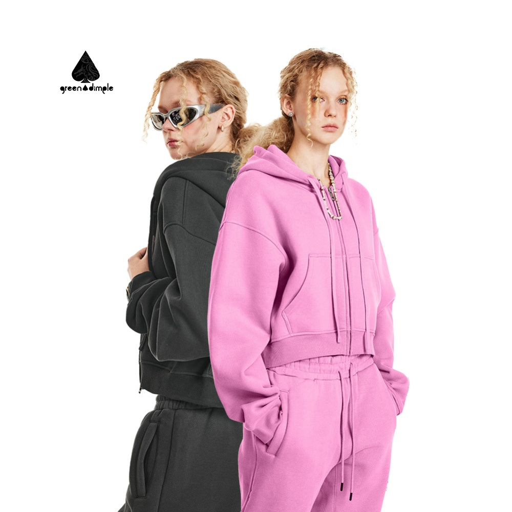 350Gsm Custom Logo Printed Heavyweight Zipper Cropped Women Hoodies