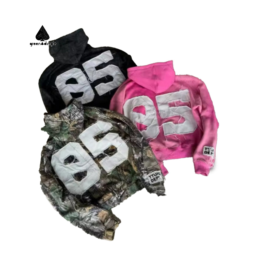 Cotton Distressed Vintage Boxy Fit Oversized Embroidery Patches Hoodies