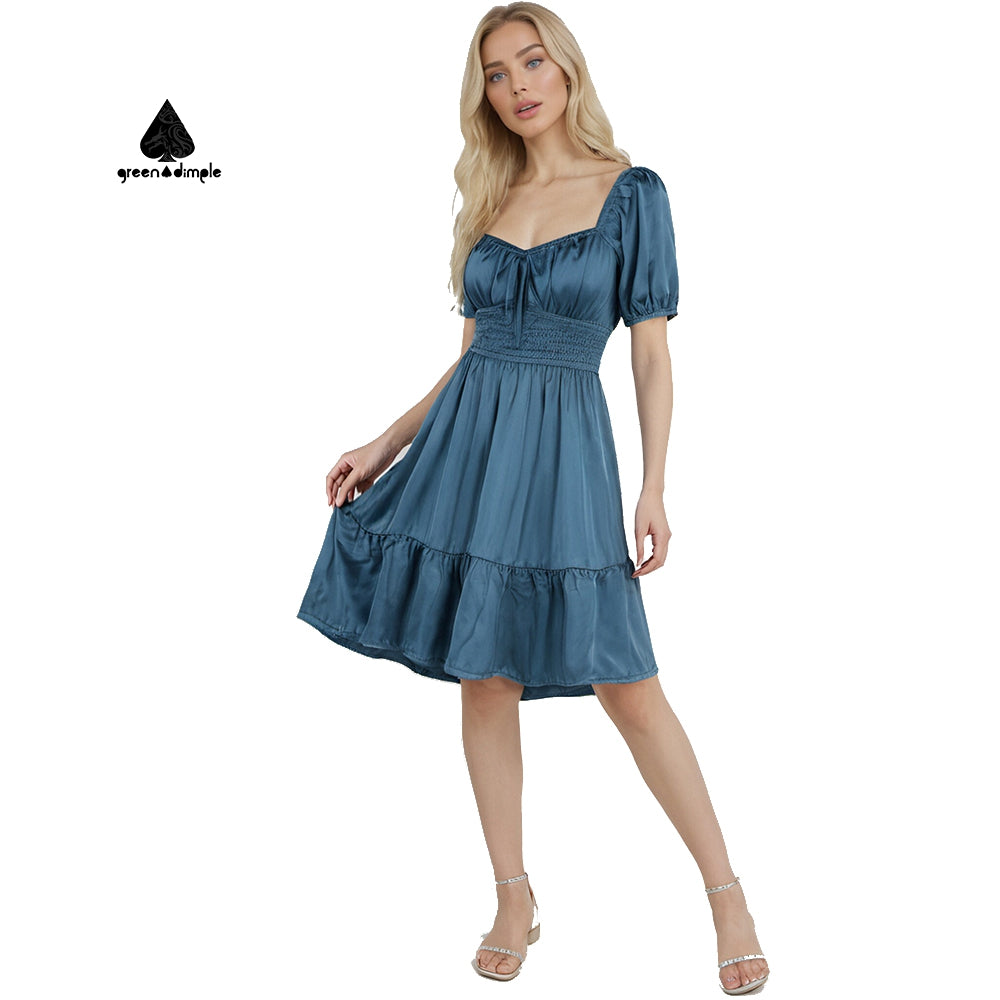 Elegant puff Sleeves Blue knee length Casual Dress