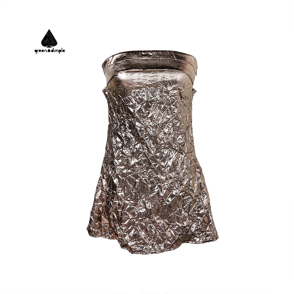 Evening Party Club Fancy Clothing Luxury Silver wrinkle Mini Dress