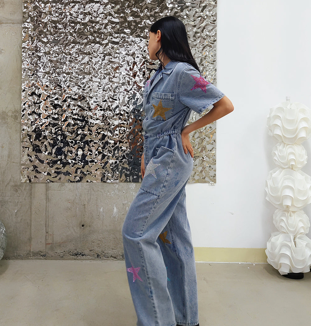 Experience fashion and comfort like never before with our Streewear jumpsuit! Made from high-quality denim, this jumpsuit features exquisite crystal embroidery and a front open design for easy wear. Make a bold statement with this unique piece, perfect for any occasion. Upgrade your wardrobe today!