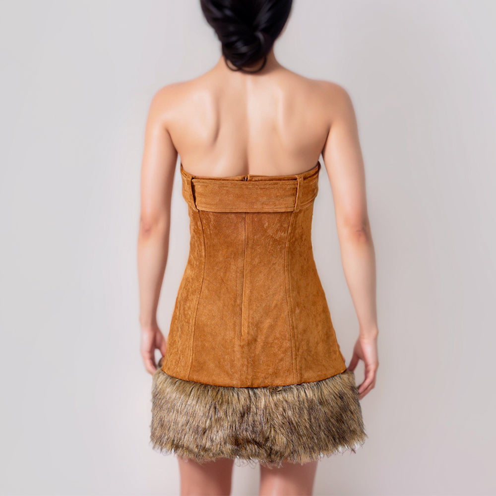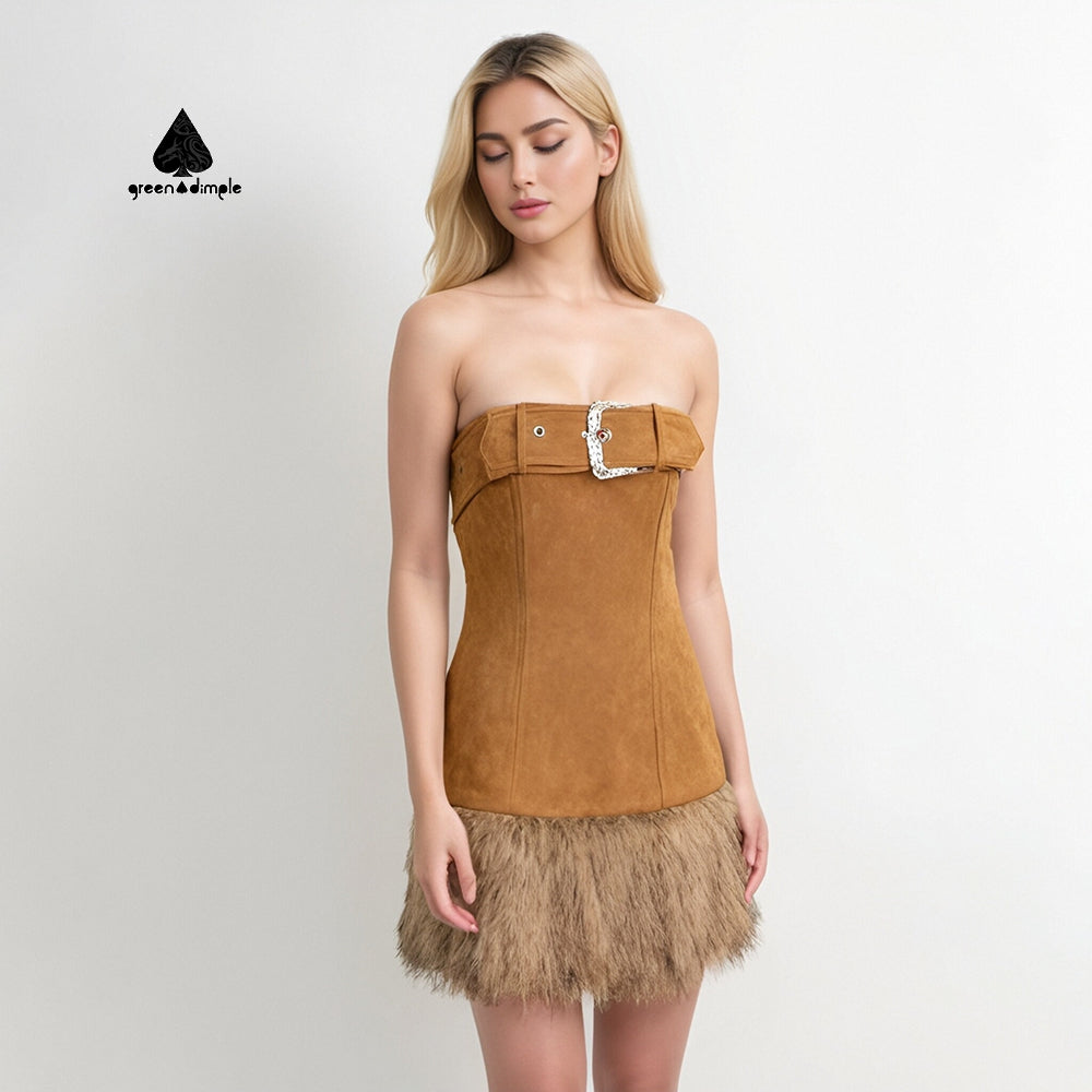 Fashion lady elegant suede faux fur bodycon short tube dress
