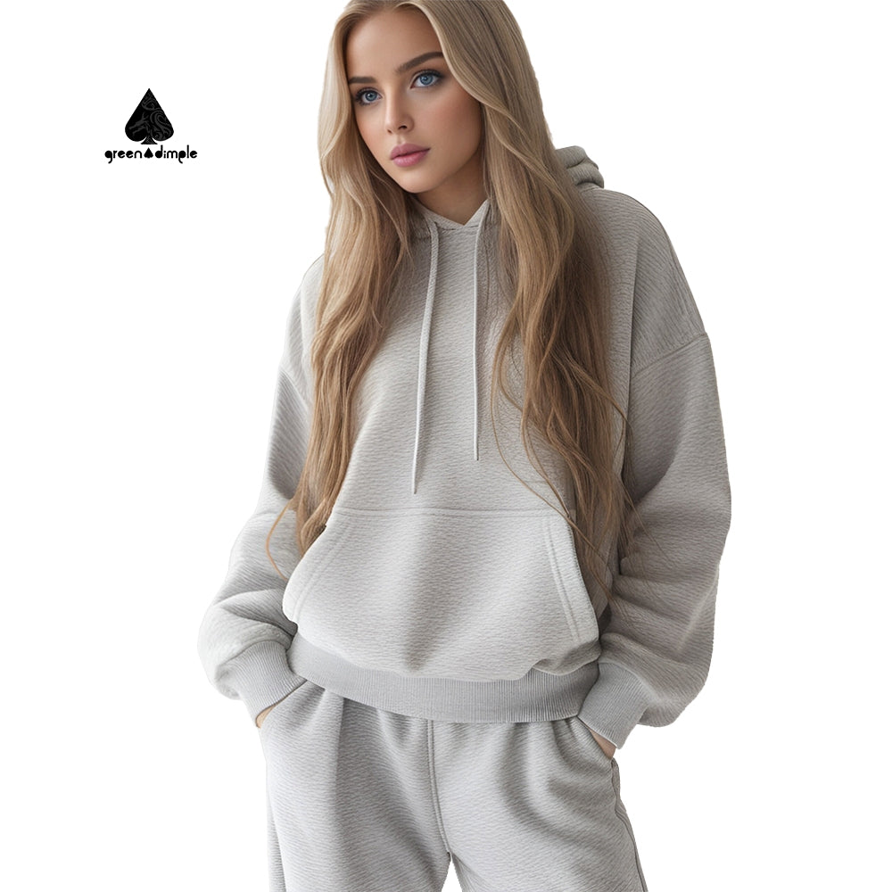 Elevate your casual wardrobe with our 350 GSM Women's Oversized Sweatshirt Sets! Designed for women of all shapes and sizes, this two-piece set includes an oversized hoodie sweatshirt and long sweatpants for ultimate comfort. Perfect for lounging or running errands, this streetwear clothing set is sure to become a staple in your wardrobe. Available now in plus sizes.