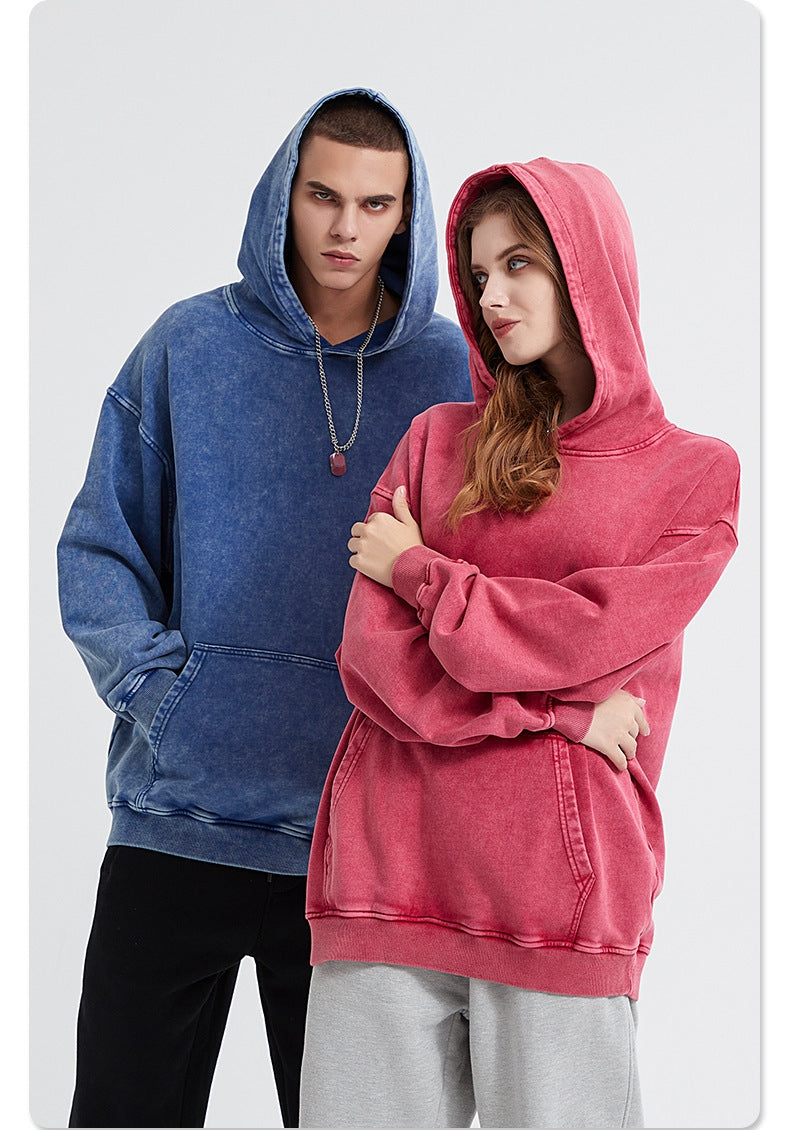 Hip Hop Hoodie Heavy Double Layer Washed Street Style Plain Hoodie