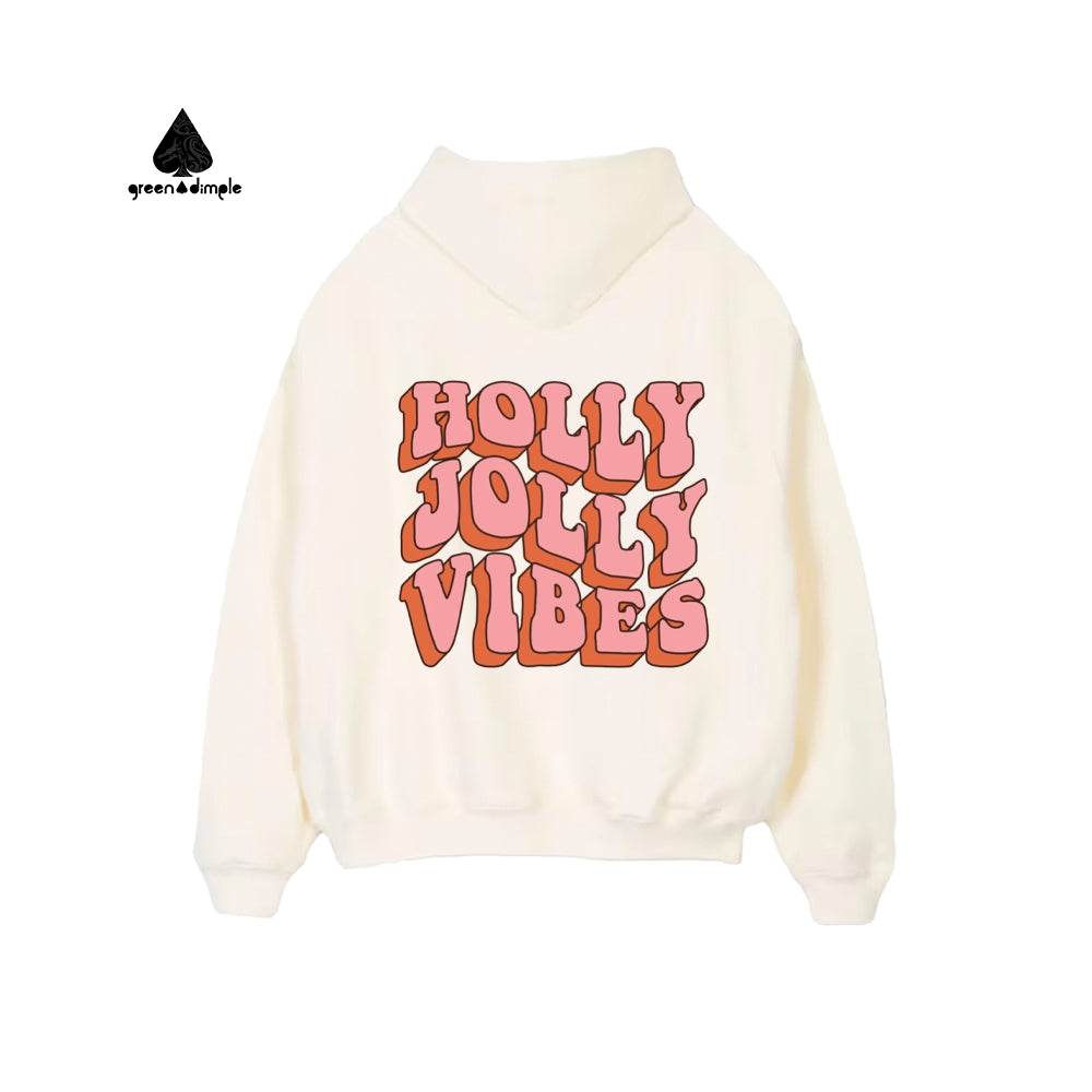 Introducing our Holly Jolly Vibes oversized hoodie! Perfect for those chilly days, this heavyweight sweatshirt offers maximum comfort and style. With a flattering fit and vibrant design, spread good vibes wherever you go. Stay cozy and fashionable with our essential hoodie. 100% Original