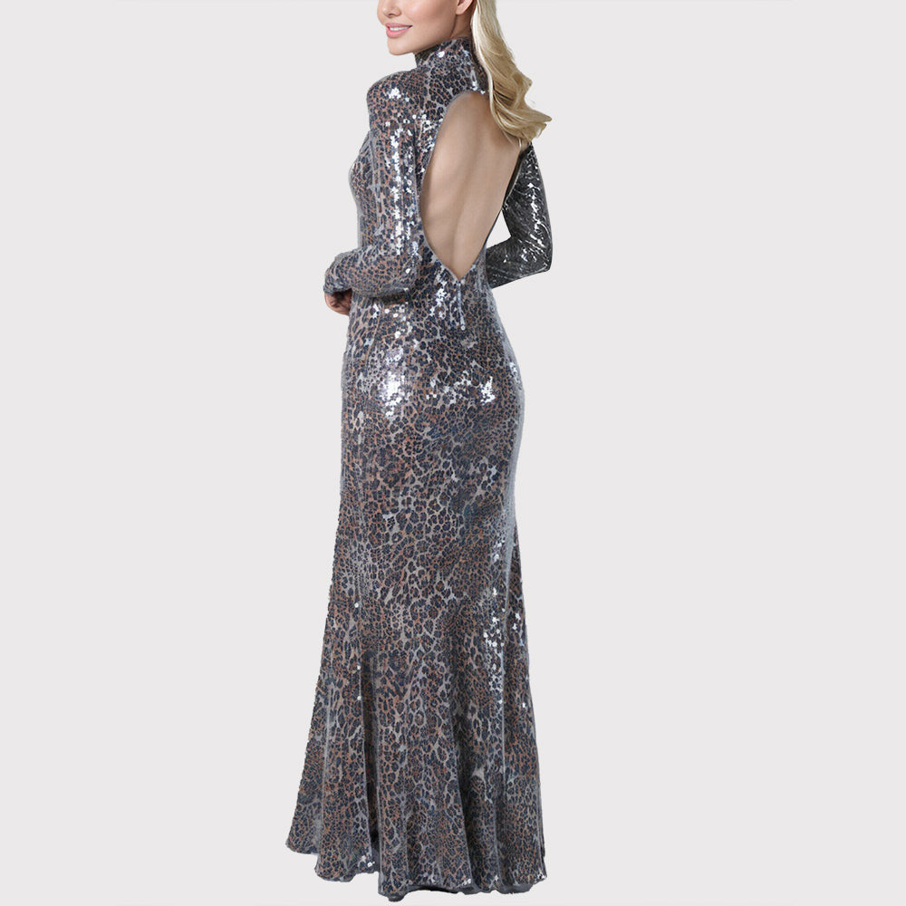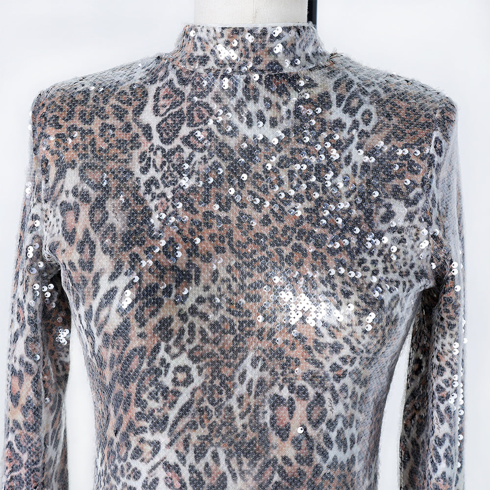 Stand out at any party with our Leopard and Sequined Long Party Dress! This elegant and formal dress features a double layer fabric with a leopard inner print and a stunning sequined mesh overlay. Perfect for any special occasion, feel confident and stylish in this unique dress.