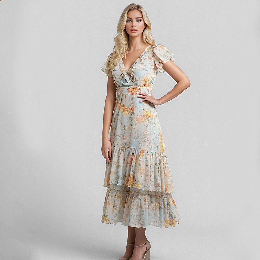 Look stunning and elegant in our Maxi Dress Prom Dresses! Perfect for any occasion, the backless design and elastic waistband will accentuate your figure, while the floral print adds a touch of femininity. This hot-seller will surely turn heads and make you feel confident and beautiful. Upgrade your wardrobe with this must-have fashion piece.