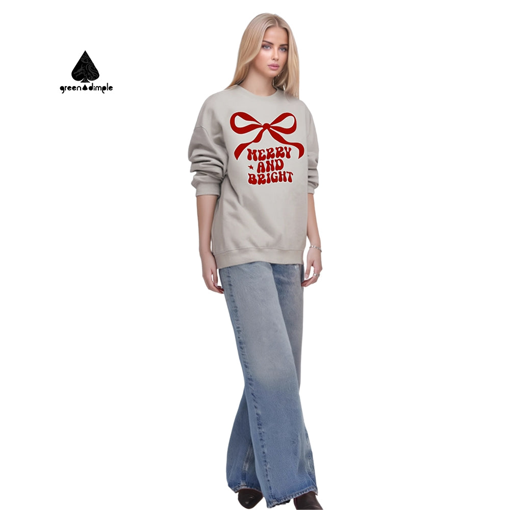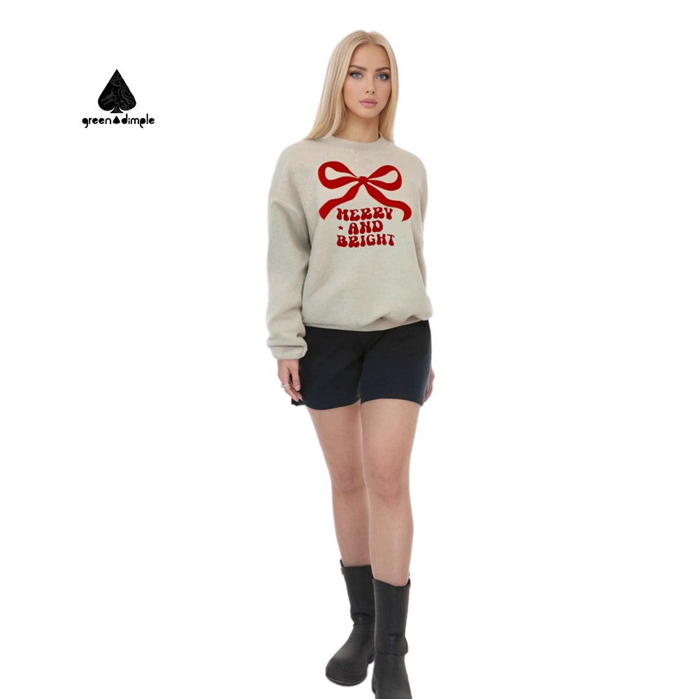 Stay cozy and stylish in our Merry and Bright Sweatshirt! Made from soft cotton wool, this loose-fitting sweatshirt is perfect for keeping you comfortable and warm. Spread holiday cheer with its festive slogan and embrace the joy of the season. Perfect for any casual occasion, this sweatshirt is a must-have addition to your winter wardrobe.