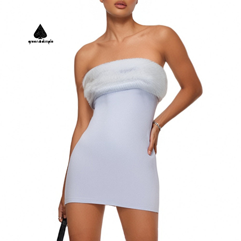 Off Shoulder Sexy Mini Sheath Tube Club Party Dress with Fur