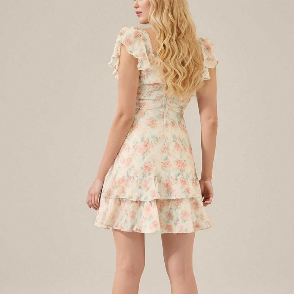 Original Design Floral casual a-line short ruffle dress