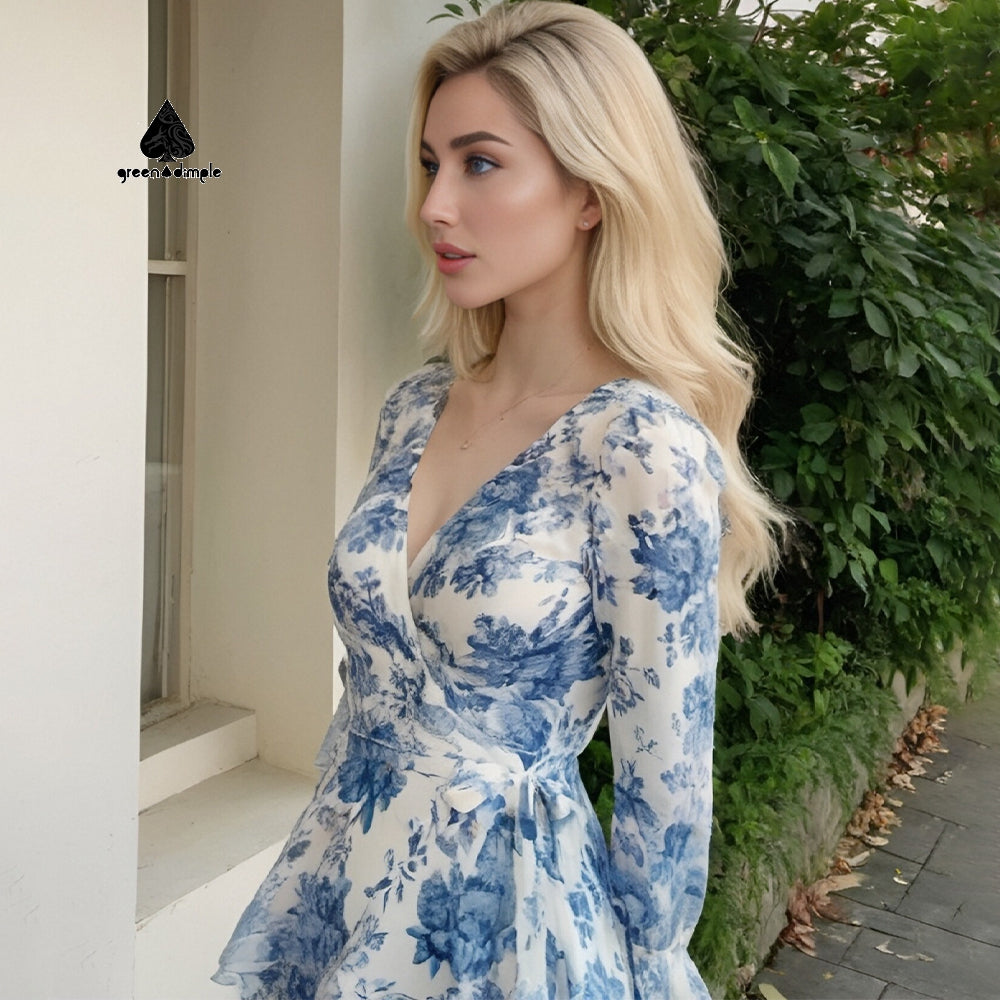 Original Women's V-neck Long Sleeve French Floral Dress
