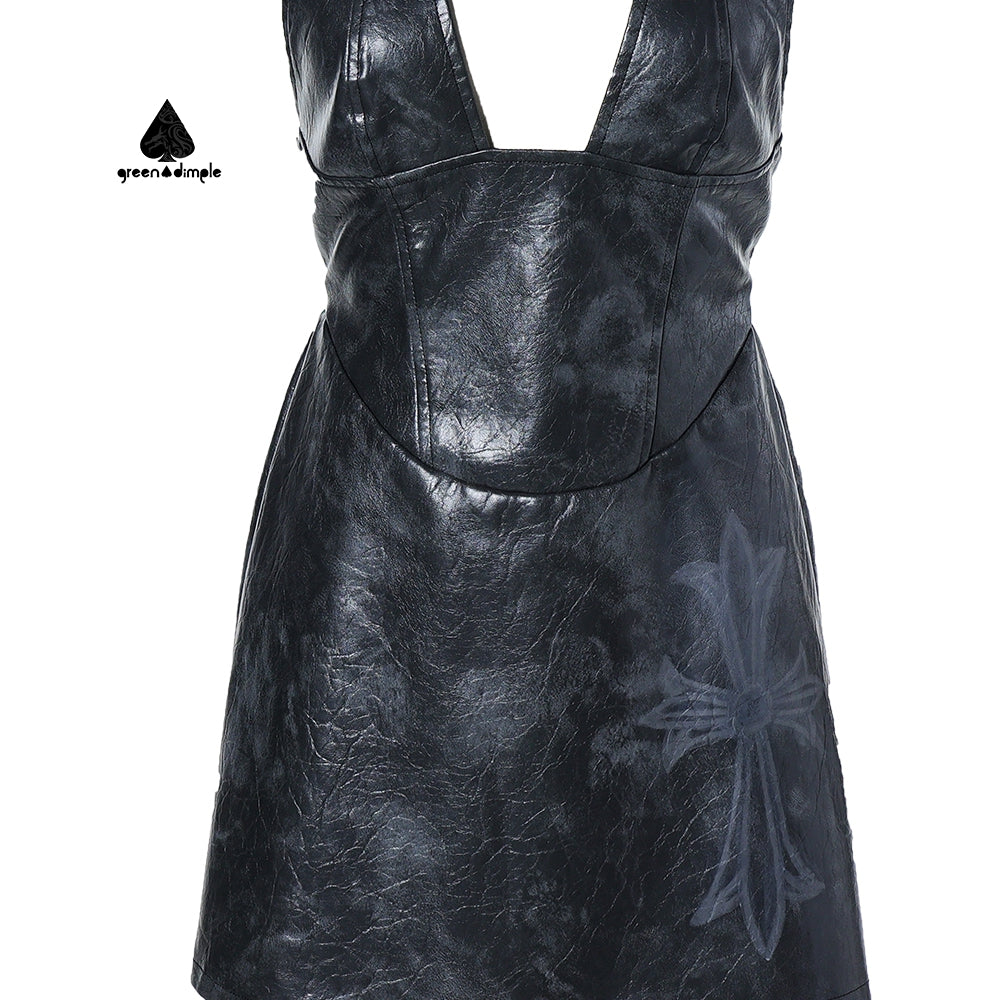Elevate your style with our Women's Summer New Deep V-neck Sleeveless Dress. Made with high-quality PU leather, this dress will add a touch of sophistication to any occasion. The halter backless design and plunging neckline exude confidence and sexiness, making you the center of attention. Perfect for formal events or a night out on the town.