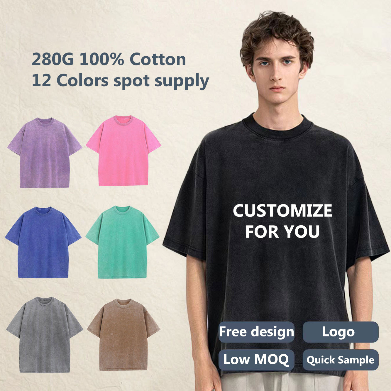 Retro Washed T-shirt pure cotton 280g drop shoulder hip-hop street fashion