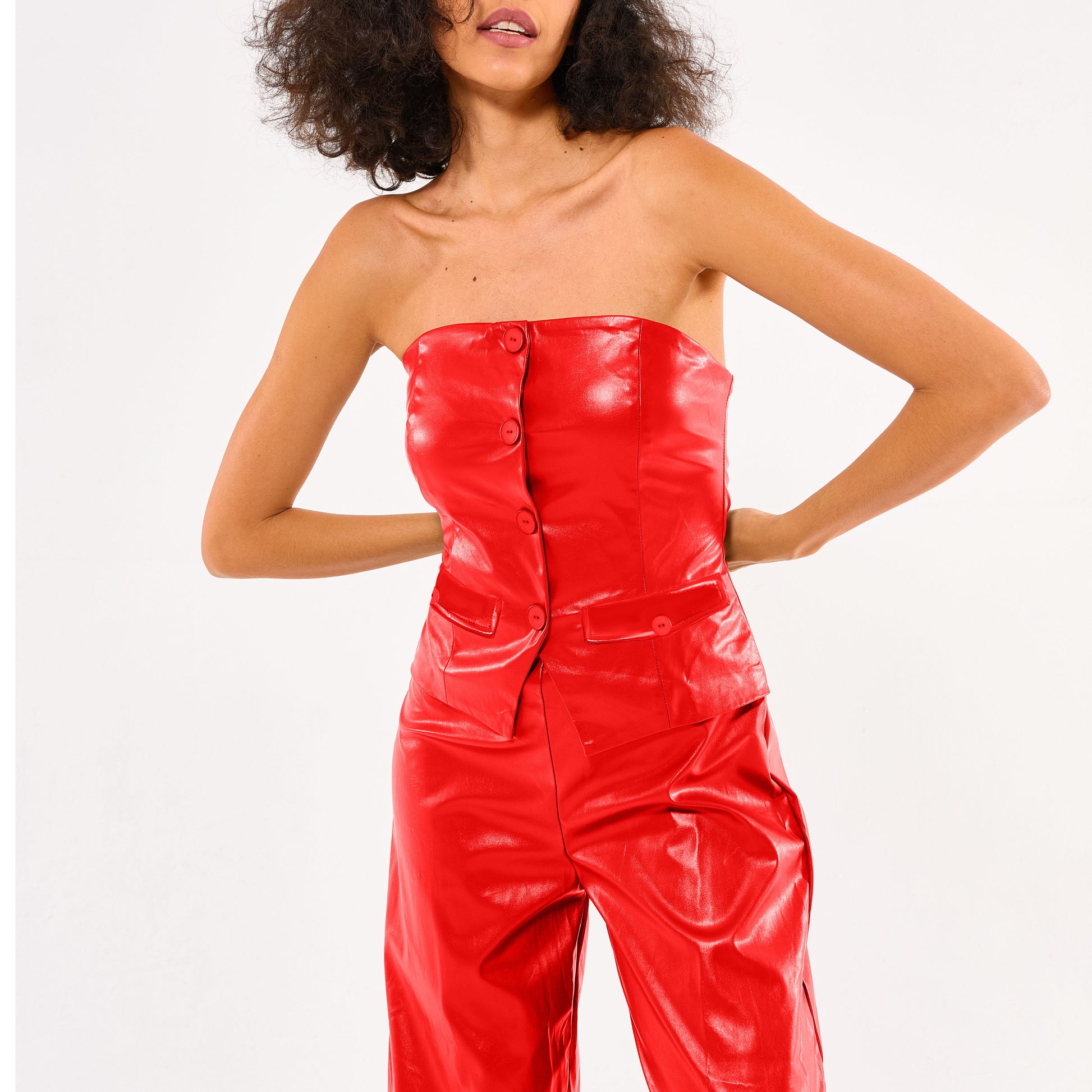 Original China factory Customize Fashion Casual PU leather tube Top And long Pants set