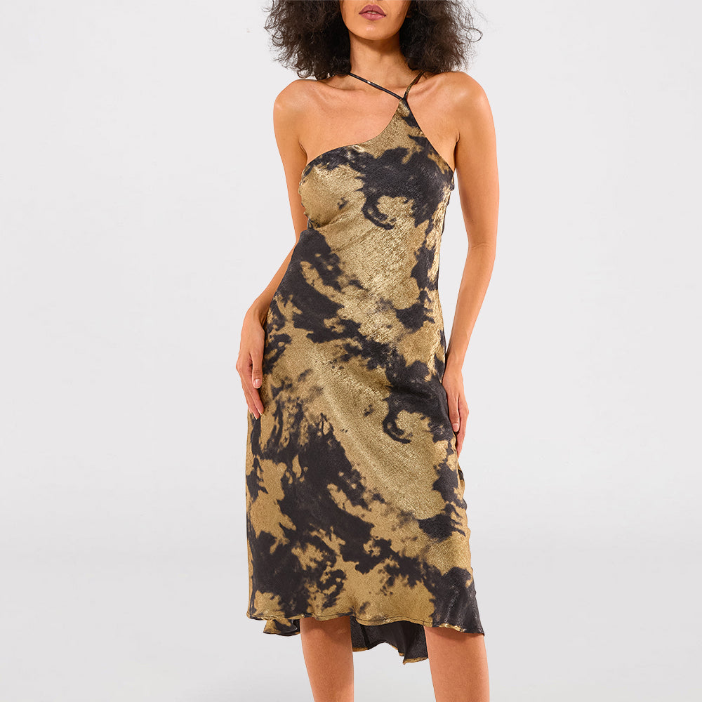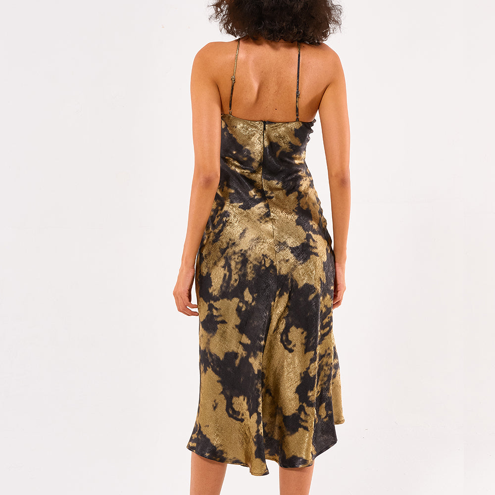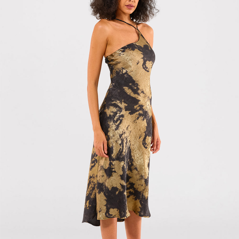 New fashion trendy design Tie-dye satin halter neck Midi Dress