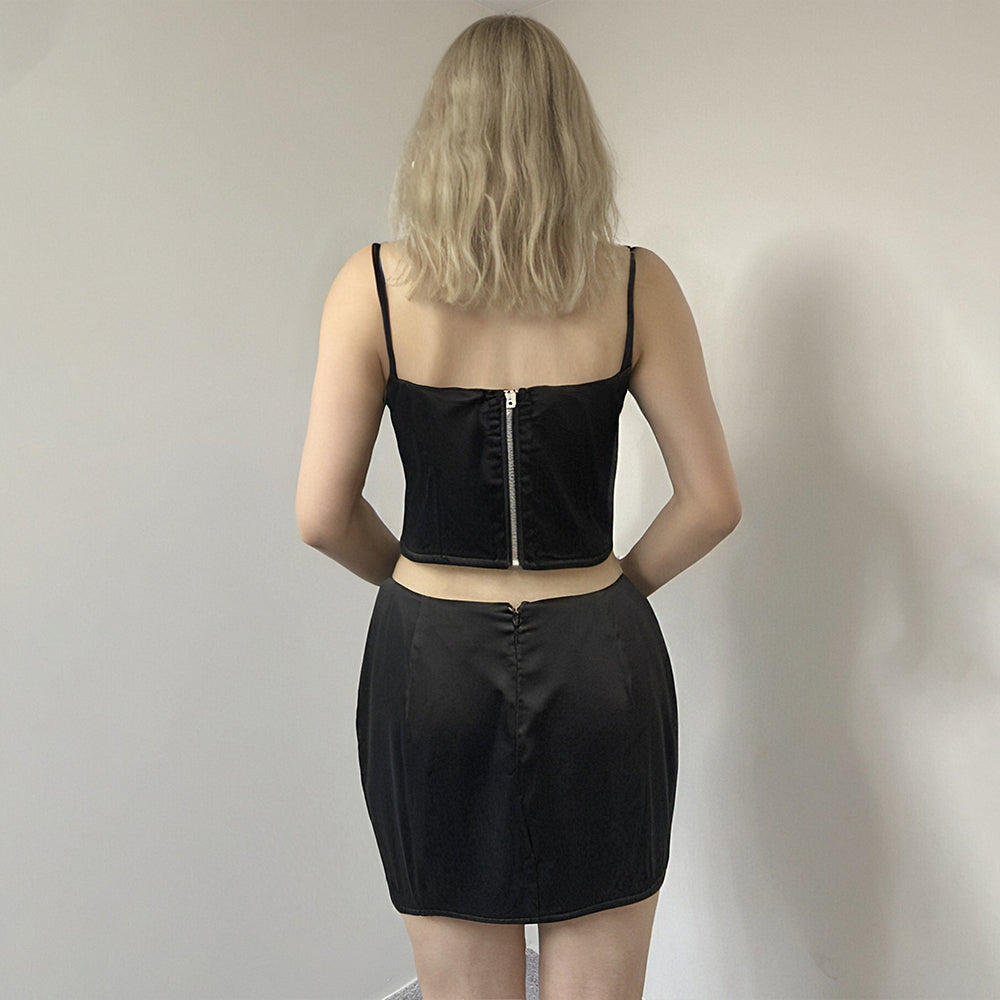 This 2-piece set features a sexy lace tube top and a short skirt in black. Perfect for summer, this outfit is made for women who love to make a statement with their lingerie. Complete with a custom fit, this set is both stylish and comfortable for any occasion!