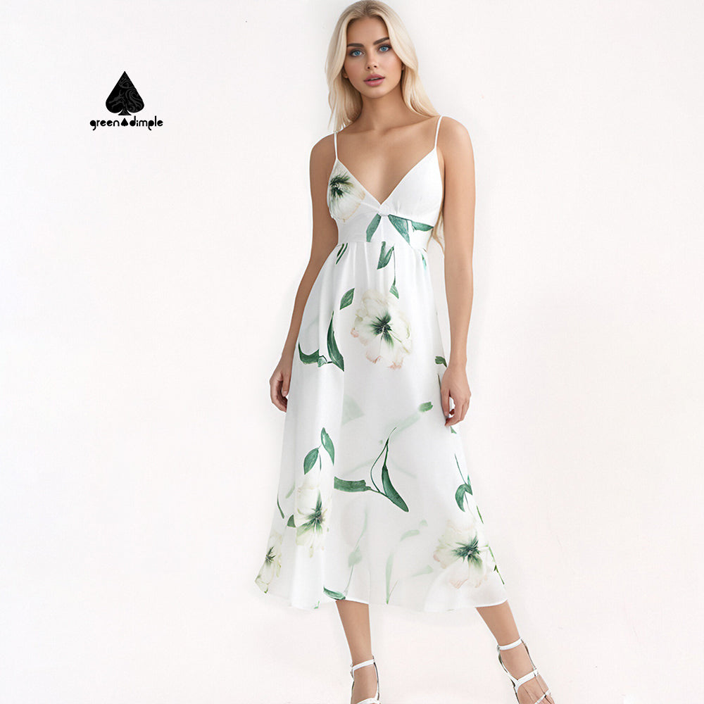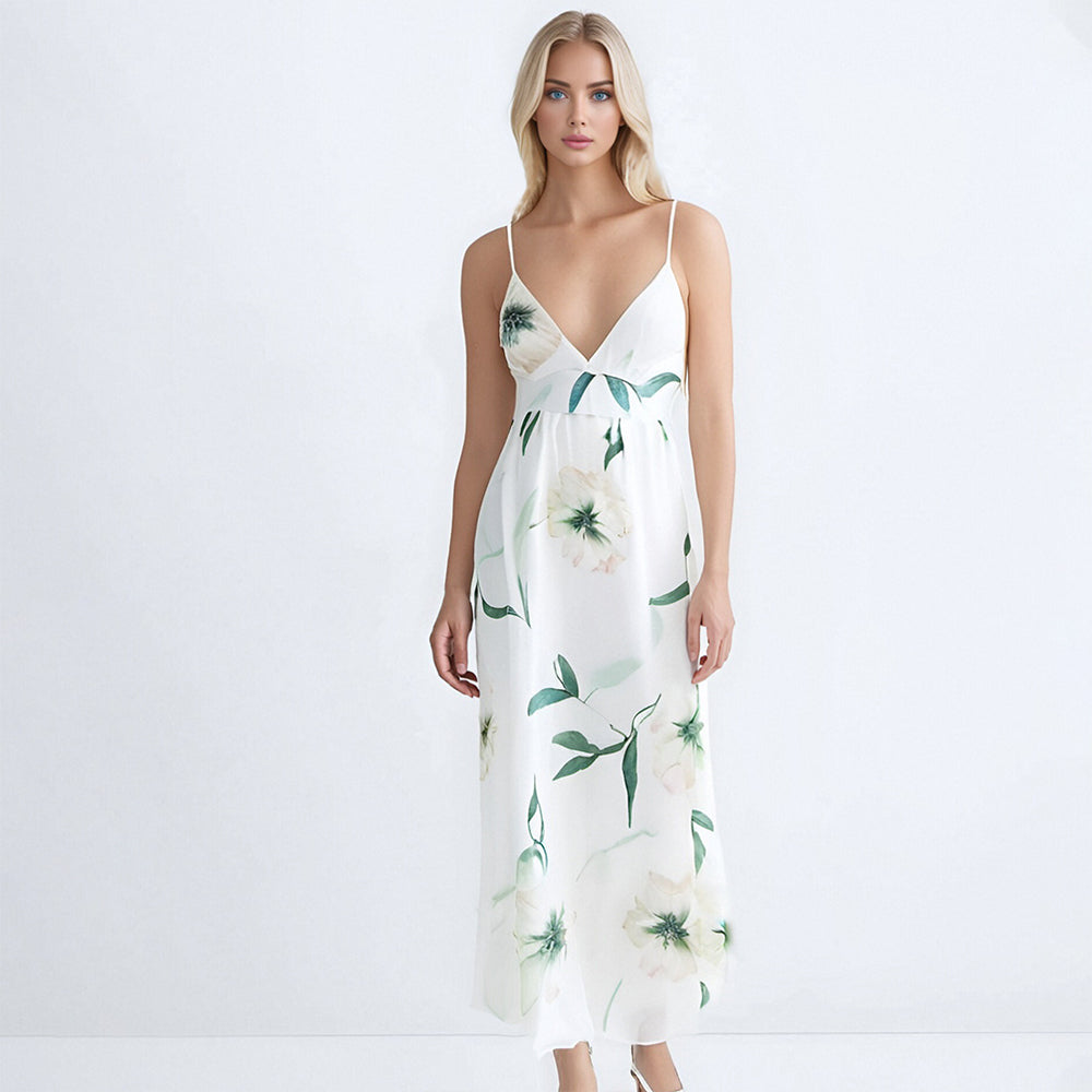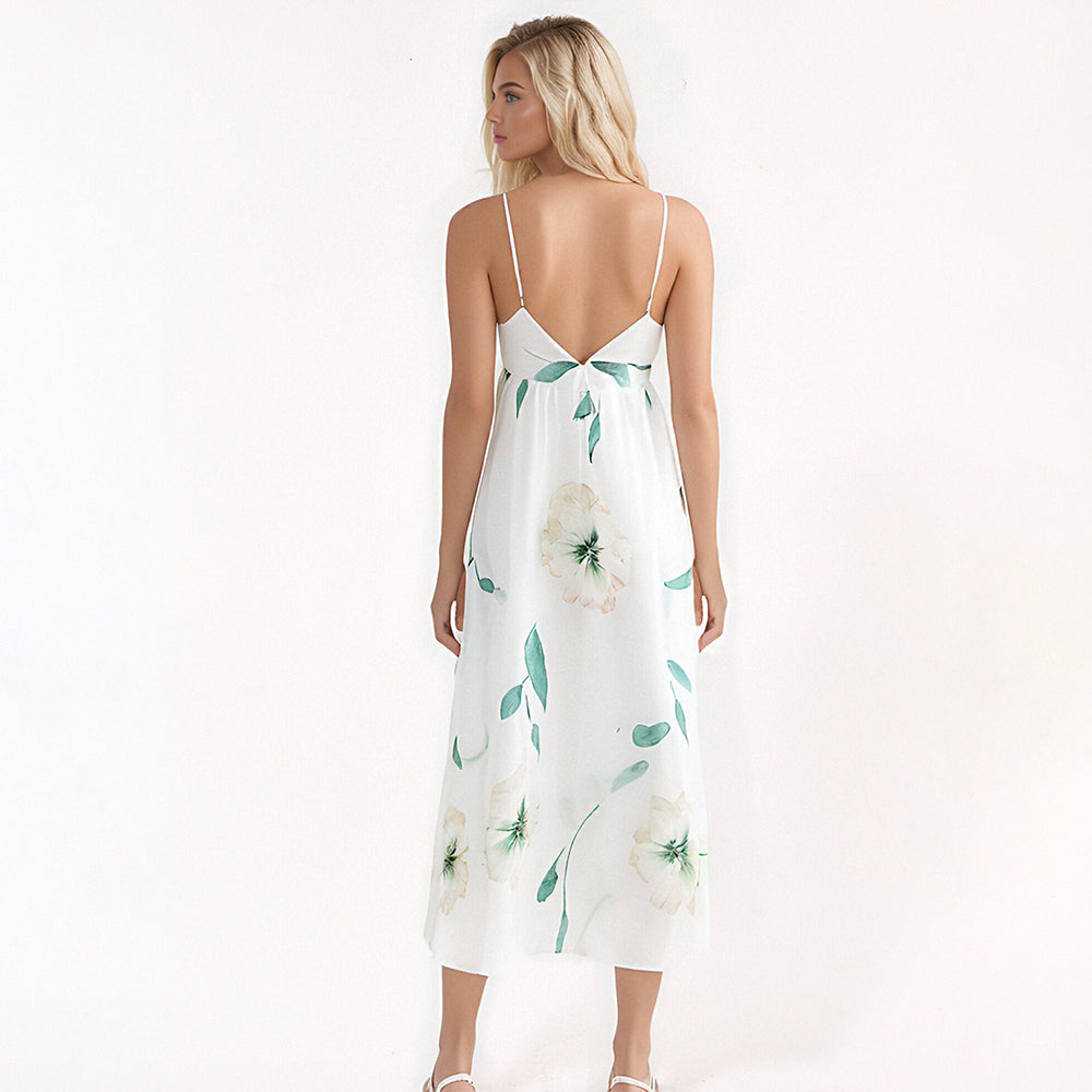 Sexy V-Neck Backless Floral Printed Maxi Summer Casual Dress