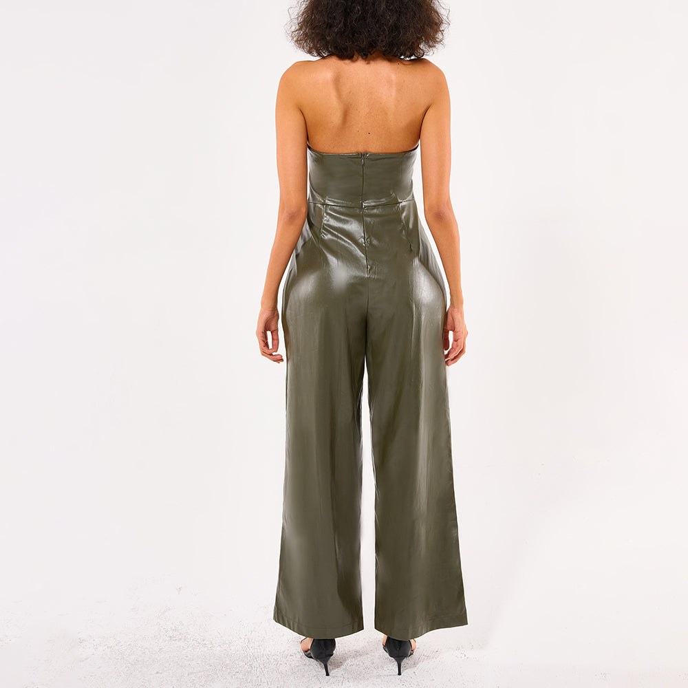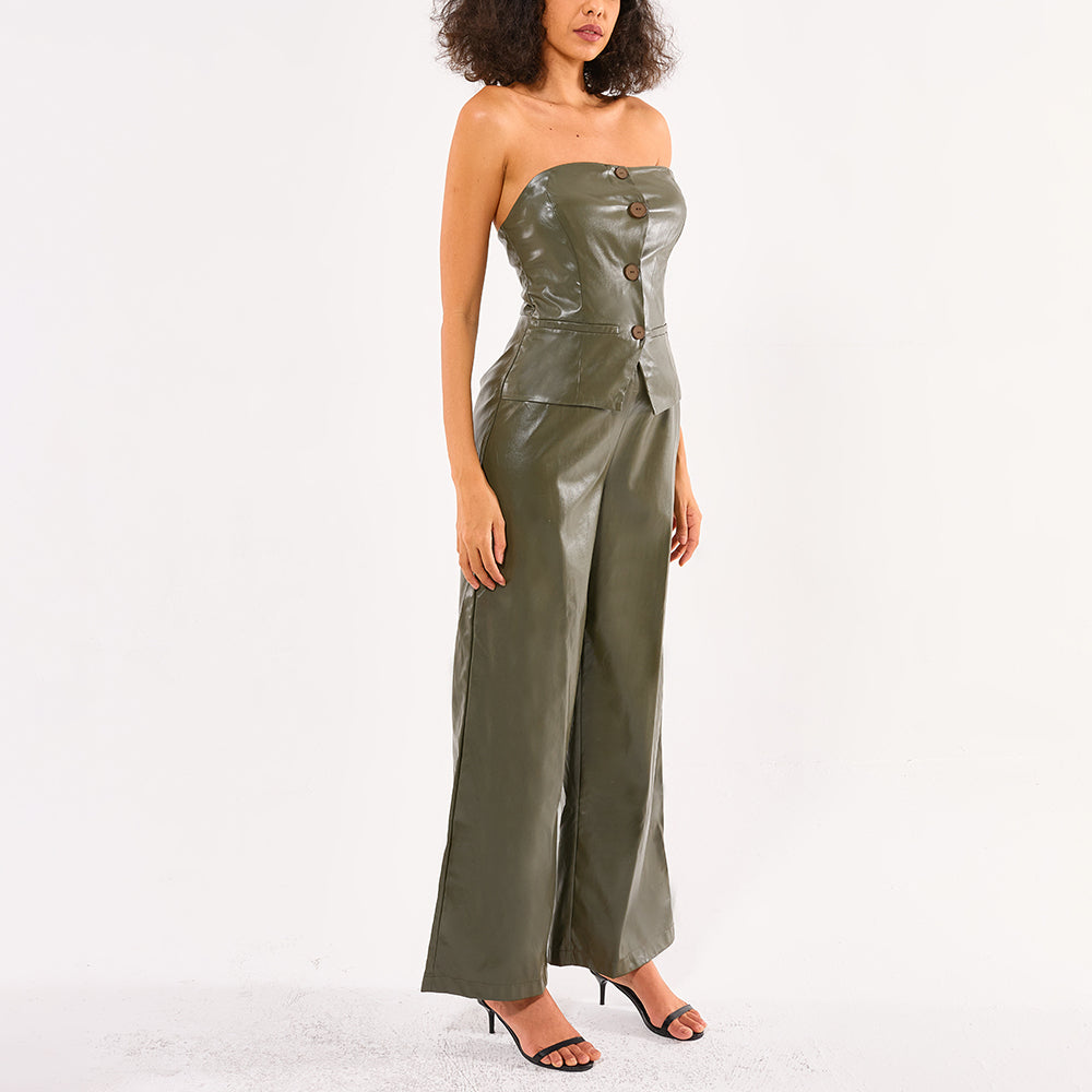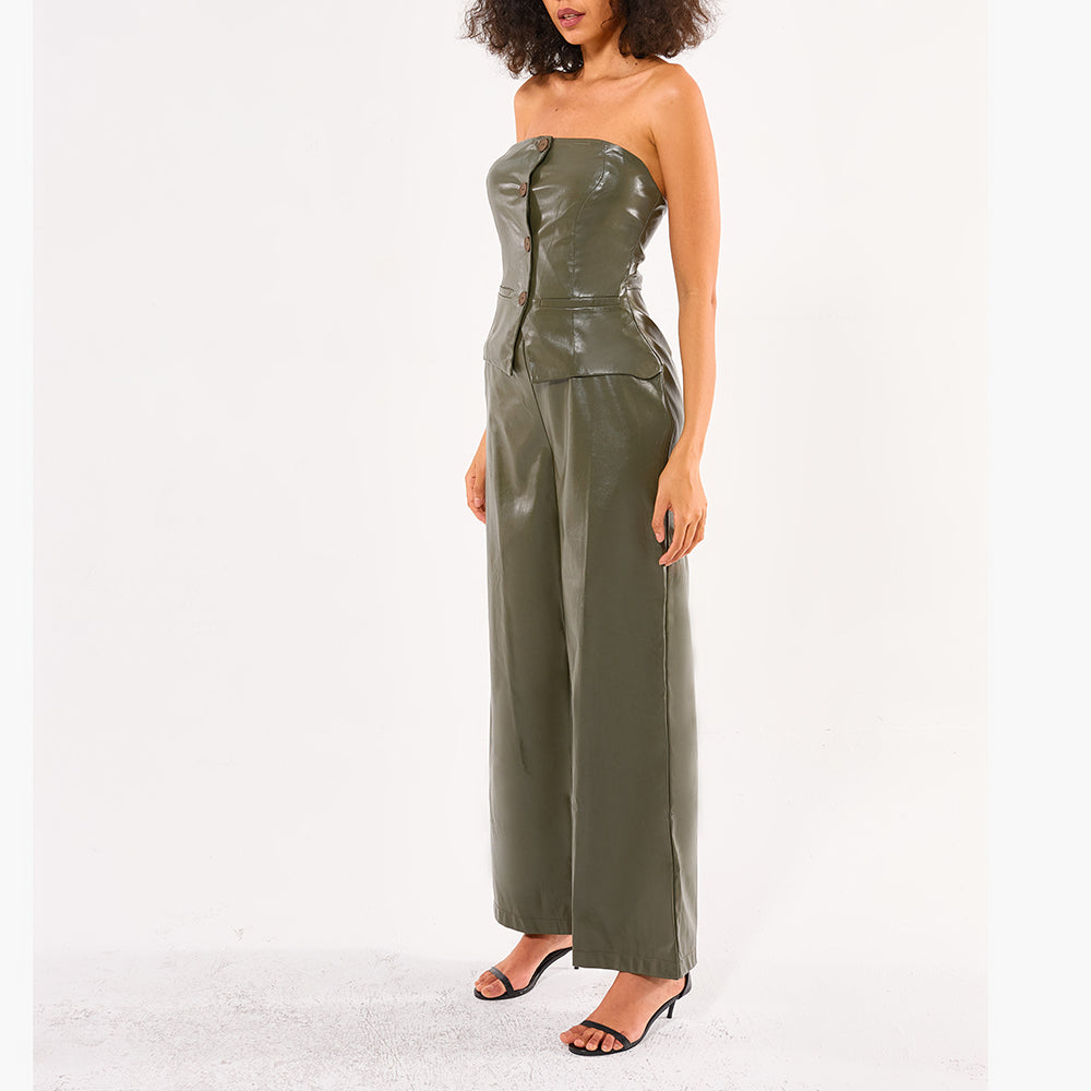 Fashion Casual set New PU Pants and Collarless tube top Blouse