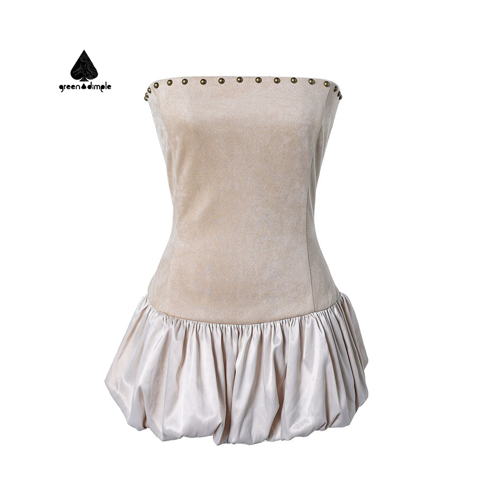 Solid Backless Sleeveless Bandeau Puff Bubble Party Dress Women Strapless Bubble Mini Dress