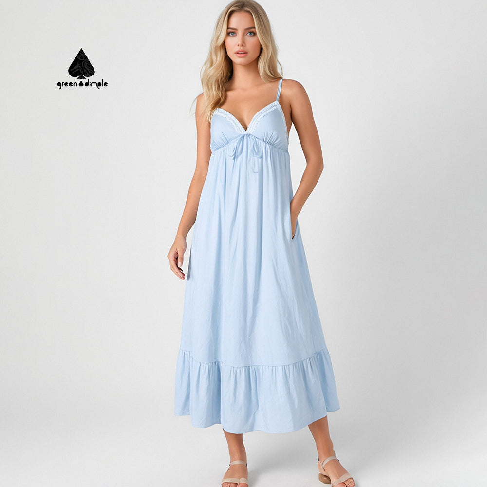 Add elegance and style to your wardrobe with our Strap V neck Loose Fit Casual midi long Dress. Made with 100% pure cotton, this dress is not only trendy and luxurious but also comfortable to wear. Perfect for any occasion, from casual outings to special events, it's a must-have for any fashion-forward woman!
