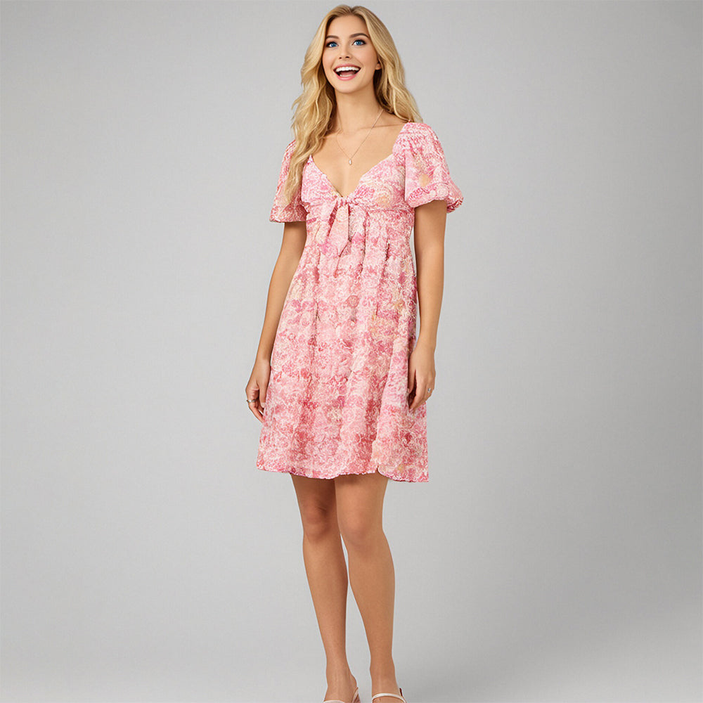 Experience comfort and style with our Summer Red Floral casual short dress for chubby women! Made with soft cotton, this elegant and loose-fitting dress features a trendy bow neck and a beautiful floral print. Perfect for staying cool and fashionable during the summer months.