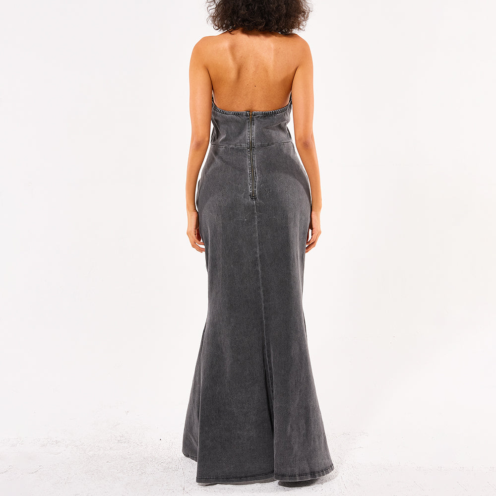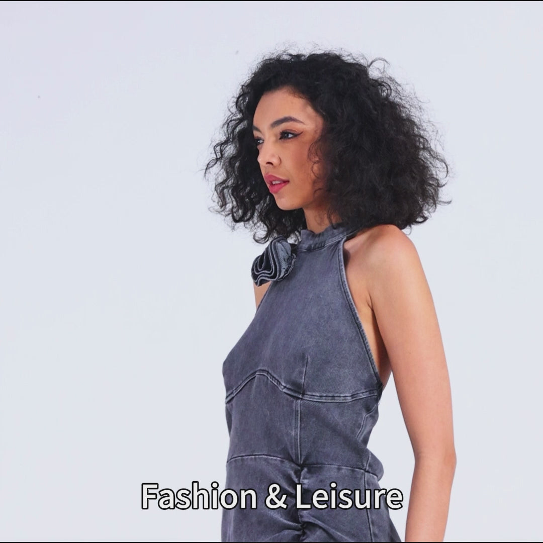 Elevate your style with our Original New Hanging Neck dress. This sleeveless denim dress features a three-dimensional flower design and a flattering split. Perfect for this summer, it's a fashion-forward choice for special occasions. Embrace elegance and sophistication in our latest design for ladies.
