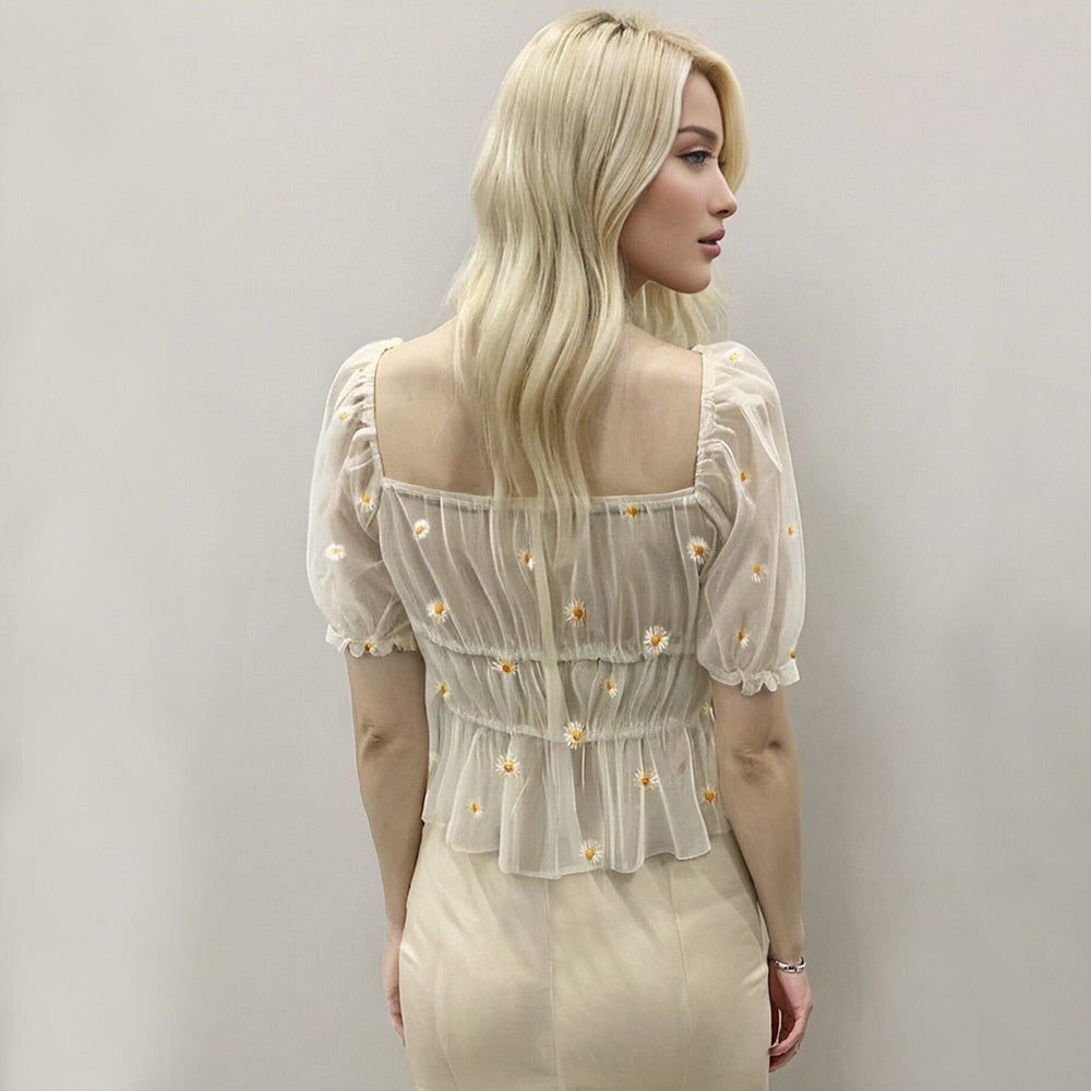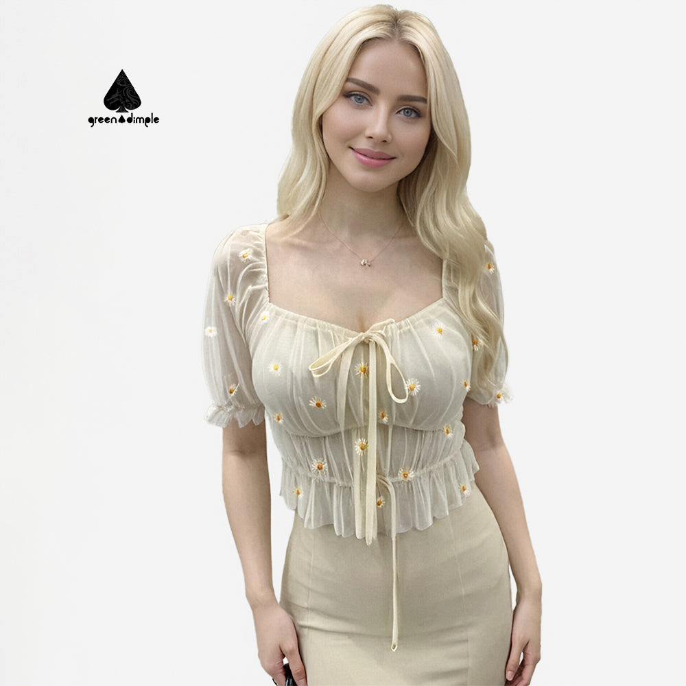 Thin Breathable Short Bubble Sleeve Casual Shirt Top