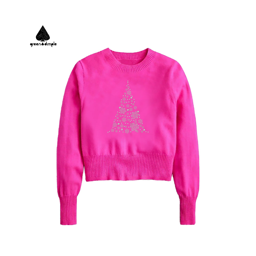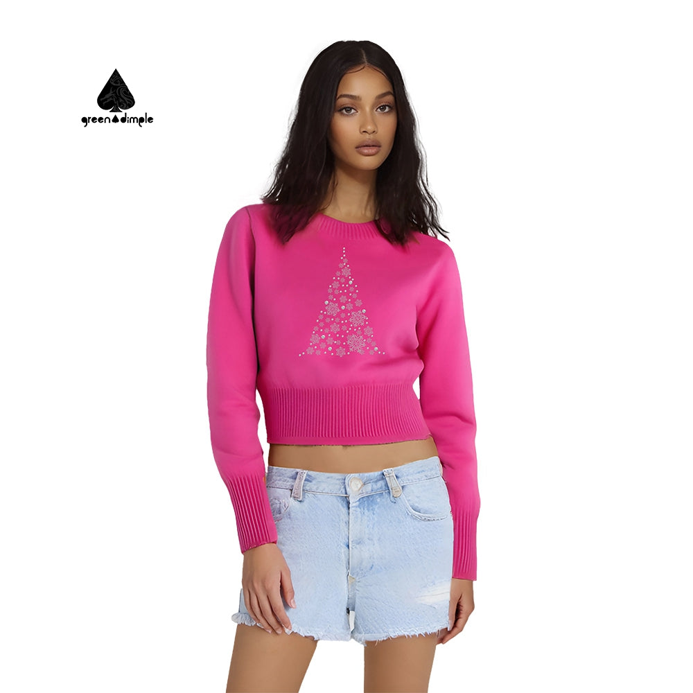 Winter Wool O Neck pink women crop top short Sweatshirt