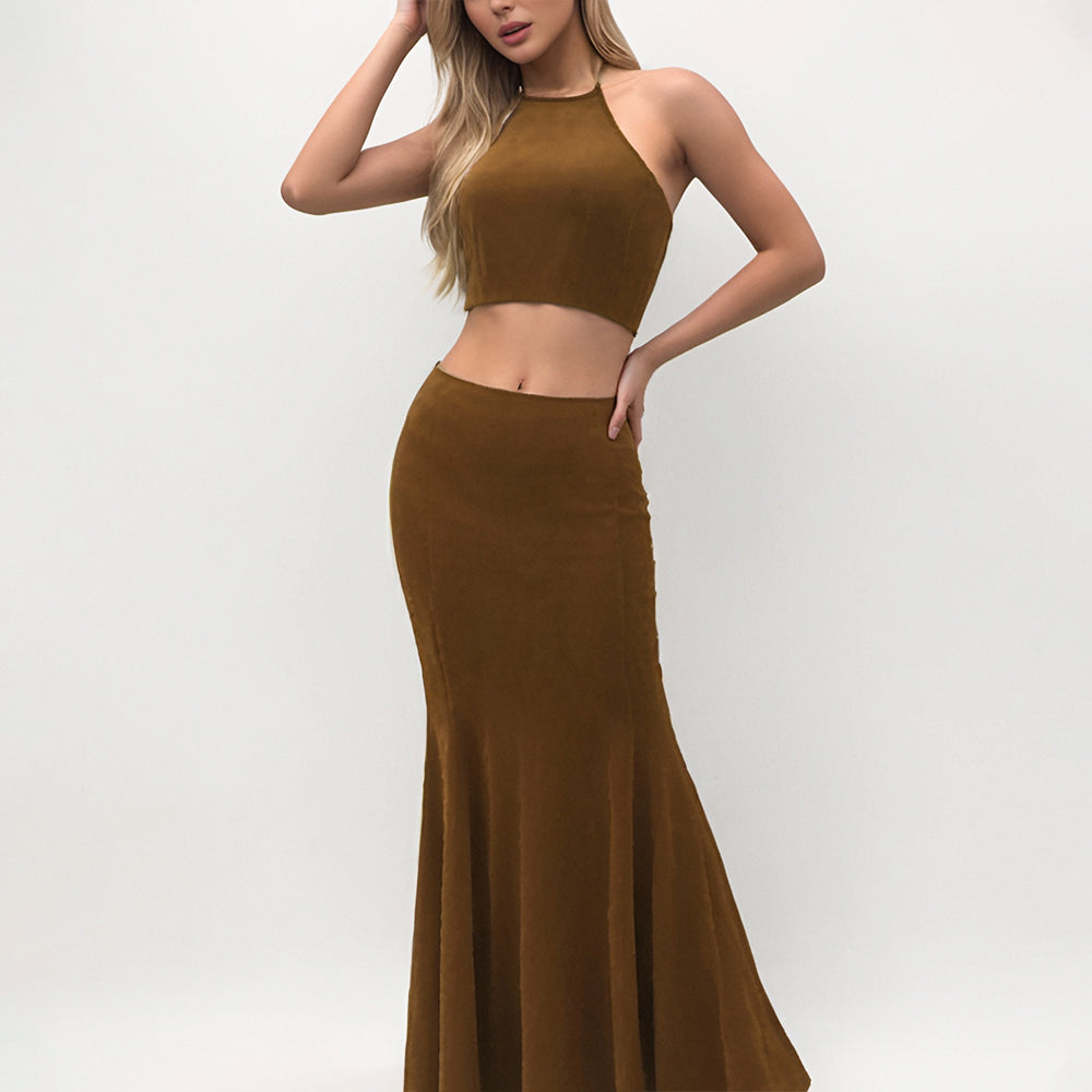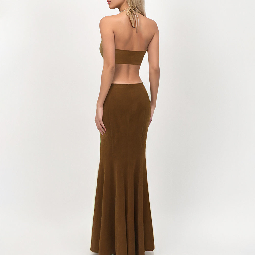 Indulge in a bold and alluring style with our Women Avant-garde fashion camisole long skirt set. With its suede fabric and original design, this set exudes sensuality and avant-garde fashion. Perfect for both casual outings and parties, this set is a must-have for any daring fashionista.