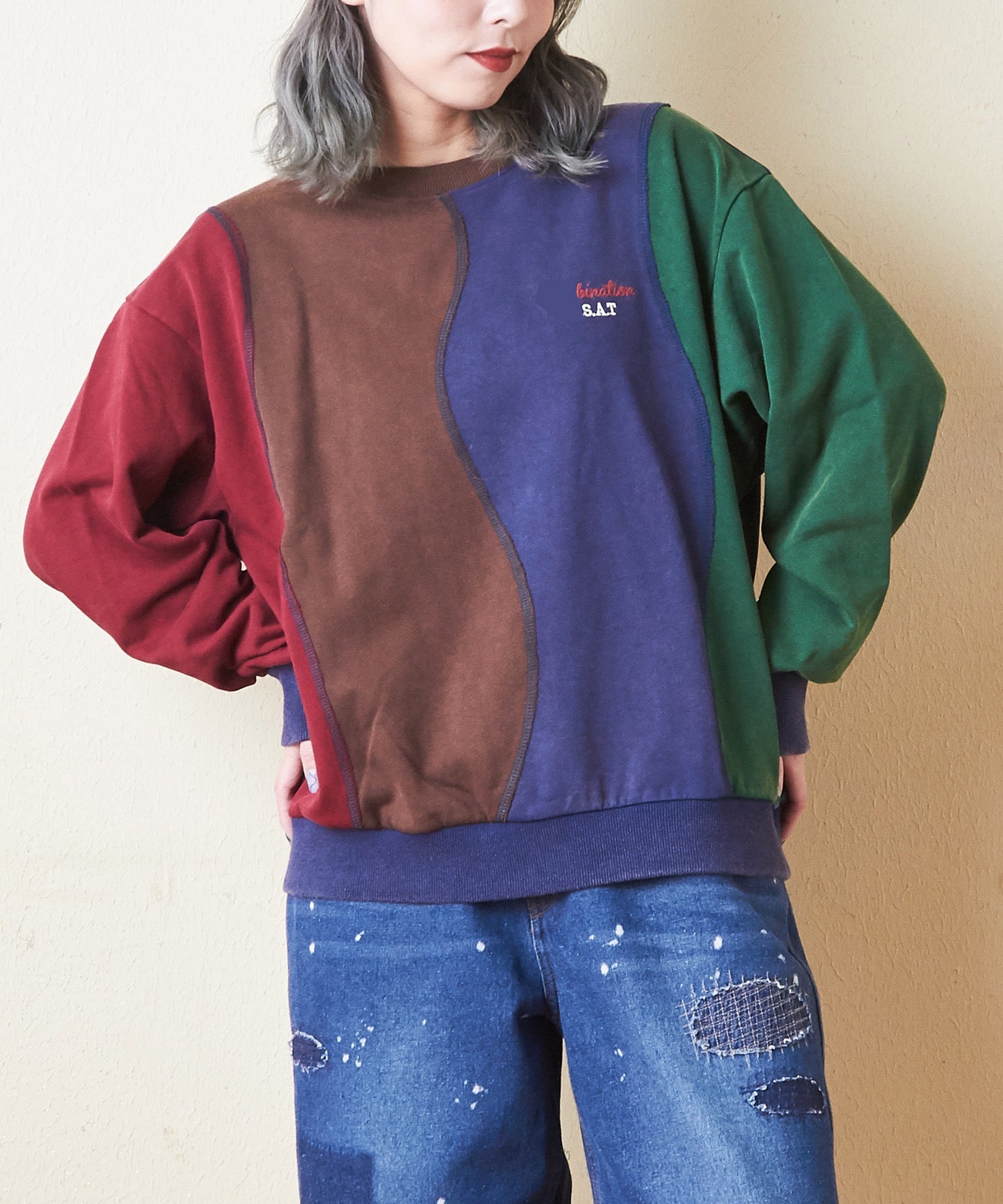 Women Crew Neck Color Block Patchwork Design Sweatshir