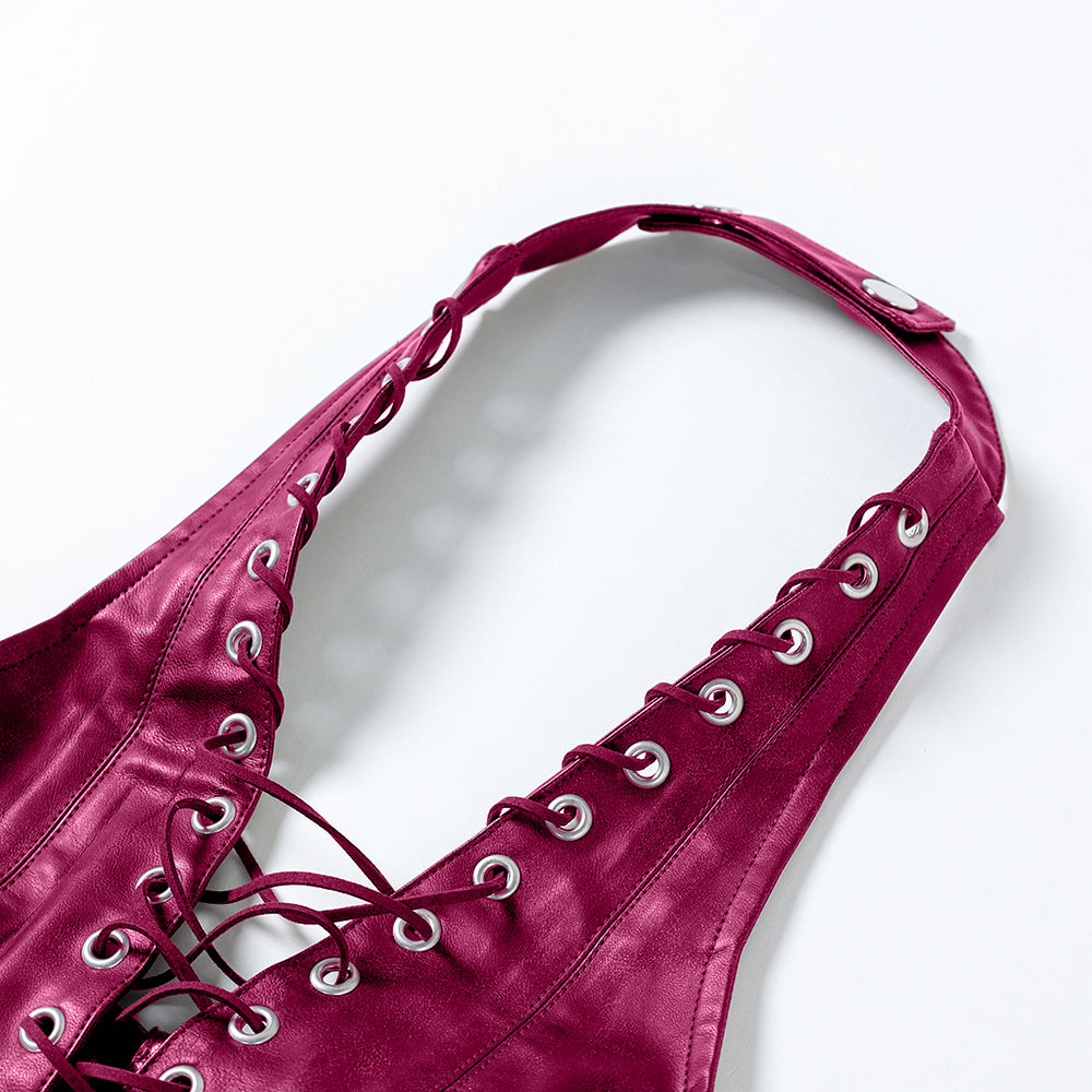 Y2K PU leather Vest Crop Top and flare pants set with eyelet